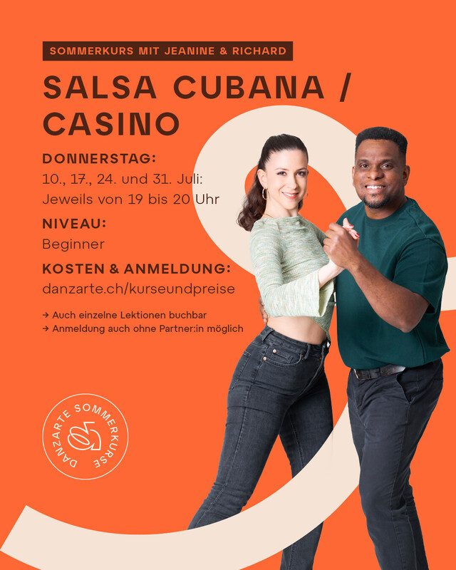 Jeweils 19:00-20:00 Uhr Auch einzelne Lektionen buchbar Anmeldung auch ohne Partner:in möglich Was in Europa als Salsa oder Salsa Cubana bekannt ist, nennen wir traditionellerweise Salsa Casino. Tauche ein in den kubanischen Paartanz. Wir freuen uns auf dich, Dein Danzarte Team. https://danzarte.ch/tanzkurse-bern/