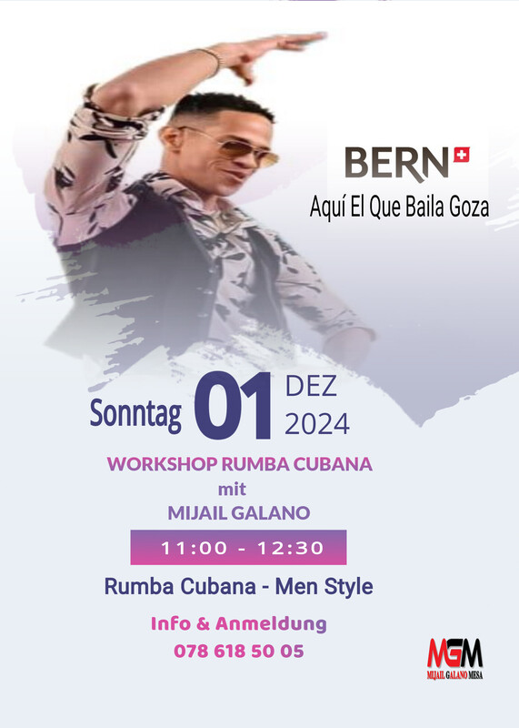A Rumbearrrr Rumberos Sonntag - Sunday - Domingo Bern🇨🇭 Workshop Rumba Cubana mit Mijail Galano 11:00 - 12:30 Rumba Cubana Men Style Info & Anmeldung 078 618 50 05 Aquí El Que Baila Goza www.mijailgalano.ch