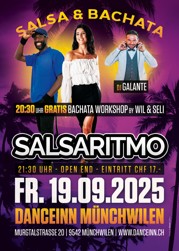 Die beliebte SALSA & BACHATA Party der Ostschweiz🥳. Geniesse das einzigartige Ambiente und die tolle Stimmung im Dance Inn Münchwilen💃🏻🕺🏾♥️.. 🔘20:30H - 21:30H Gratis BACHATA Workshop by WIL & SELI💃🏻🕺 🔘21:30H - Open End, Party & Tanzen bis in die Morgenstunden🥂.. 🔘DJ: GALANTE🎧 Wir freuen uns auf einen coolen BACHATA Workshop mit WIL & SELI sowie eine tolle Party🥳🥂..