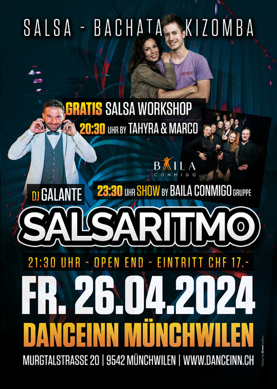 🎼💃🏻🕺🏾Let‘s Dance in einer der schönsten Location der Ostschweiz. Die Freitags „Special Party“ ist ein Garant für viel Spass, Tanzen und Freunde treffen🥳💃🏻🕺🏾❤️.. Programm: ➡️20:30 - Gratis SALSA Workshop by TAHYRA & MARCO💃🏻🕺🏾🔥.. ➡️21:30H - Open End Partytime! ➡️23:30H - SHOW by BAILA CONMIGO💃🏻🕺🏾💃🏻🕺🏾💃🏻🕺🏾.. ➡️Music by: DJ GALANTE🎧 Wir freuen uns auf einen Super Workshop und eine tolle Show🥳..
