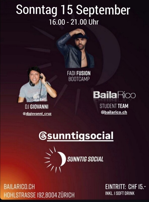 Salsa im DUKES Dj Giovanni free Eintritt BailaRico Tanzschule 4 galerías de fotos 15 de septiembre de 2024 16:00 SunntigSocial im BailaRico Salsa puertorriqueña DJ Giovanni Estuviste en este evento? Agrega tus fotos! La sañsa puertorriqueña, clásica, romántica y más hoy en BailaRico DJ Giovanni Hohlstrasse 192 Zürich 16.00 - 21.00 Uhr Precio de entrada: CHF 15.00 Share on Facebook Eventos