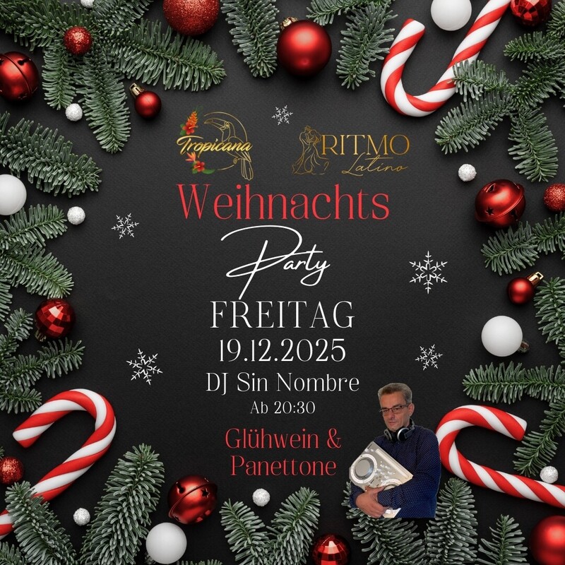 🎄✨ Save the Date: X-MAS PARTY bei Ritmo Latino! ✨🎄 Am 19.12. ab 20:30 Uhr feiern wir gemeinsam im Standort Wohlen das Jahresende – mit Glühwein, Panettone und natürlich ganz viel Tanz & guter Laune! 💃🕺 Lass uns zusammen das Tanzjahr 2025 ausklingen lassen – in gemütlicher Atmosphäre und festlicher Stimmung. 🎁❤️ 📍 Ritmo Latino – Wohlen 🗓️ Freitag, 19. Dezember 🕣 Start: 20:30 Uhr 📍 Ritmo Latino – Aarau 🗓️ Freitag, 19. Dezember 🕣 Start: 22:00 Uhr Bring deine Weihnachtsstimmung mit – wir sorgen für den Rest! 🎅✨ #ritmolatinodance #xmasparty #weihnachtsfeier #ritmolatino #tanzschuleaargau #salsaparty #bachataparty #weihnachten2025 Gratis Garderobe Es stehen ca. 40 gratis Aussenparkplätze vor dem Eingang und weitere 30 gebührenpflichtige in unmittelbarer Nähe zur Verfügung. Das Tropicana befindet sich im Industriegebiet und hat genügend Platz für alle Besucher. Du findest nicht alle Infos auf dem Flyer? Gerne kannst du uns über info@tropicanaclub.ch kontaktieren. === TROPICANA === Gewerbering 28 | 5610 Wohlen | Aargau