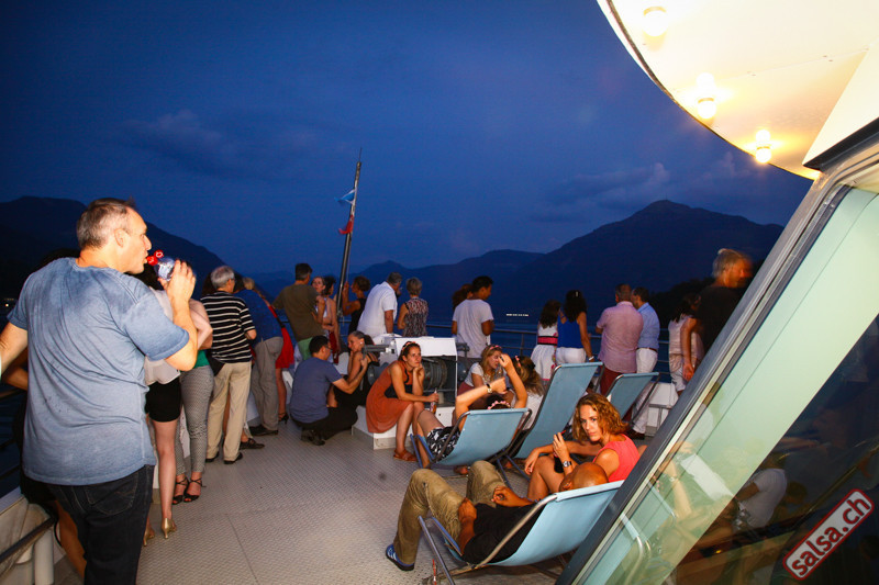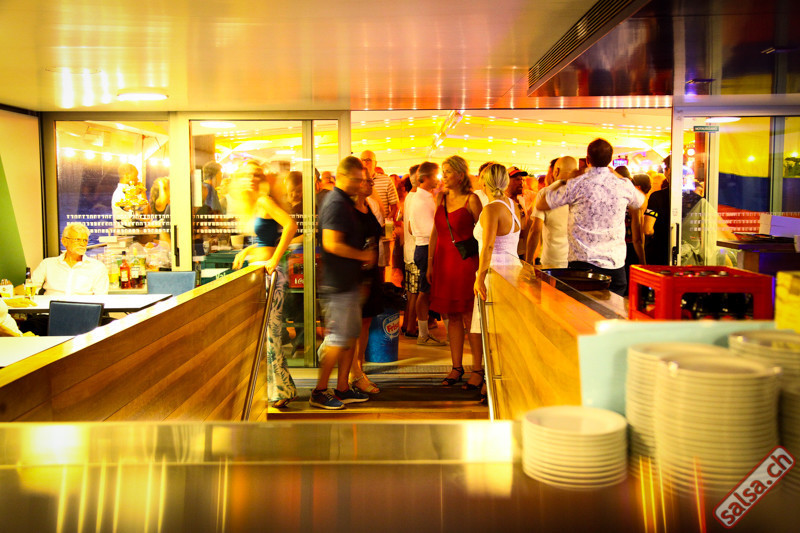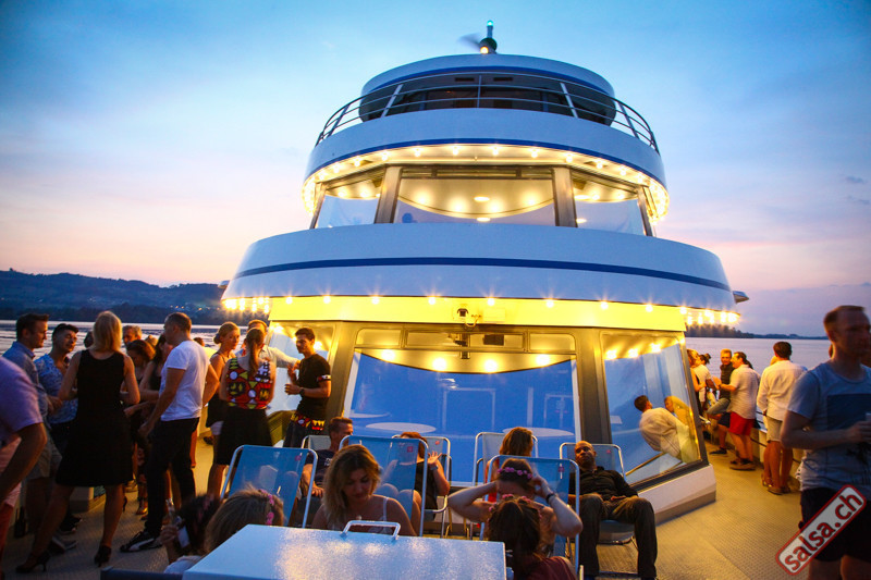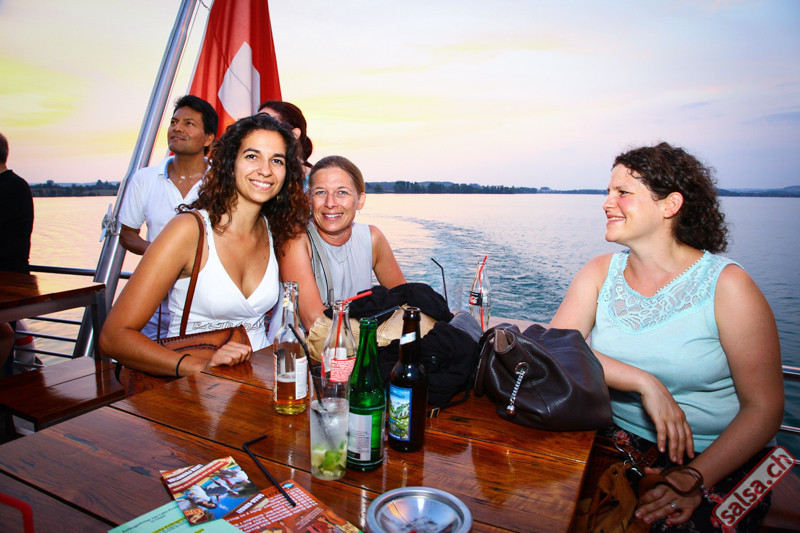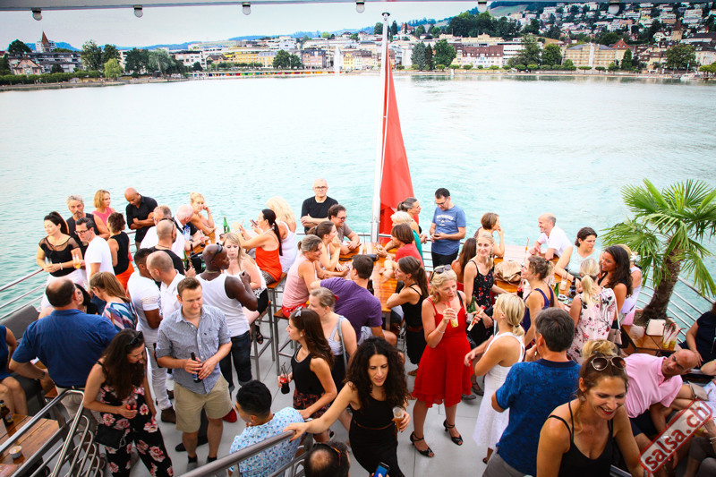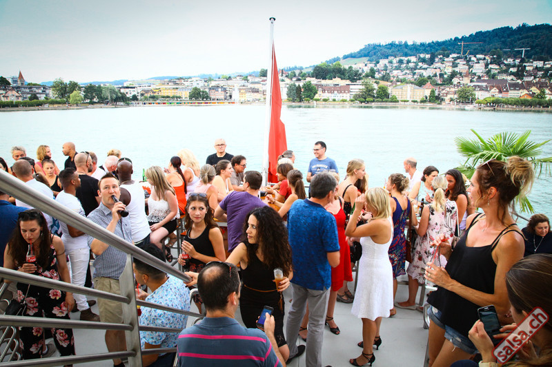 Salsa-Schiff Unsere heissen Fiestas sind pures tropisches Vergnügen. DJ Giovanni aus Ecuador begeistert mit seiner sommerlichen Mischung aus Salsa, Bachata und Latin-Hits. Vor der Abfahrt zeigt die Tanzschule Latin Promotion ein paar Grundschritte auf dem Freideck. Anschliessend gratis Salsa Afterparty im Restaurant Spago nur 300m vom Steg.