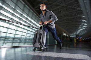 Y gracias a ese invento, la gente se lleva su monopatín donde sea que vaya porque es de alumino y no pesa nada. Y cuando ven una bajada, o están un poquito más apurados que antes, desenvuelven el artilugio móvil y se montan en él cuál niño de cinco años. Y así llegan al trabajo. Arriban a la oficina con eso. Van por los pasillos andando, y las secretarias corriendo detrás con todos los mensajes para ellos.