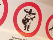 En el caso del "mariachi", el lema a pie de imagen invita a "no cantar, hacer publicidad, pedir dinero o recoger firmas en los autobuses y tranvías". Junto a esta imagen aparecen otras, enmarcadas en círculos, que indican la prohibición de tirar basura, subir los pies al asiento, fumar, etc.