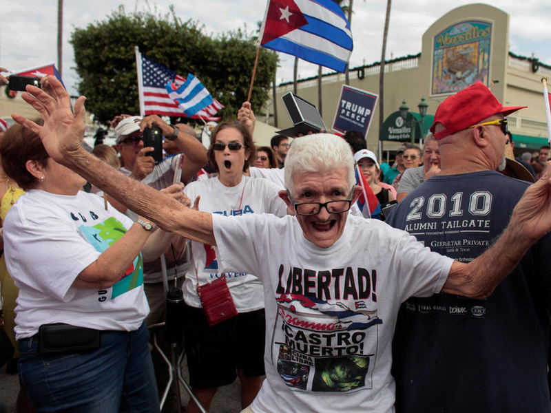 Huele a tabaco, ron y cortadito en la Calle 8, frente al café Versailles, el restaurante emblemático del exilio cubano en Miami y donde la madrugada de este sábado cientos decidieron festejar la muerte del exmandatario Fidel Castro.