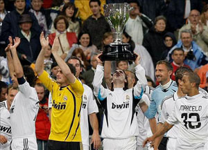 El campeón de la Liga de España, Real Madrid, despidió la temporada 2007-2008 con una goleada de 5-2 sobre Levante, en el estadio Santiago Bernabéu, en el encuentro que sirvió de fiesta para la celebración del título 31.