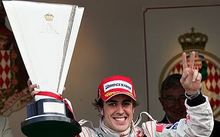 La sonrisa, nuevamente en su rostro. El gesto, el del año pasado, victorioso. Los dedos, marcando al viento el número de triunfos, dos. Con estas imágenes queda claro que las buenas sensaciones del fin de semana apuntaban a lo más alto del podio, donde Alonso celebra la victoria en Mónaco con la que cierra el círculo: 'pole', carrera y vuelta rápida. A su lado, Hamilton, segundo y Massa, tercero.