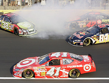 El colombiano Juan Pablo Montoya no pudo tan siquiera completar la vuelta inicial en su primera carrera en el Lowe's Motor Speedway, antes de provocar una colisión entre seis vehículos, cuando trató de adelantar posiciones en la prueba de la Copa Nextel, de la Serie Nascar.