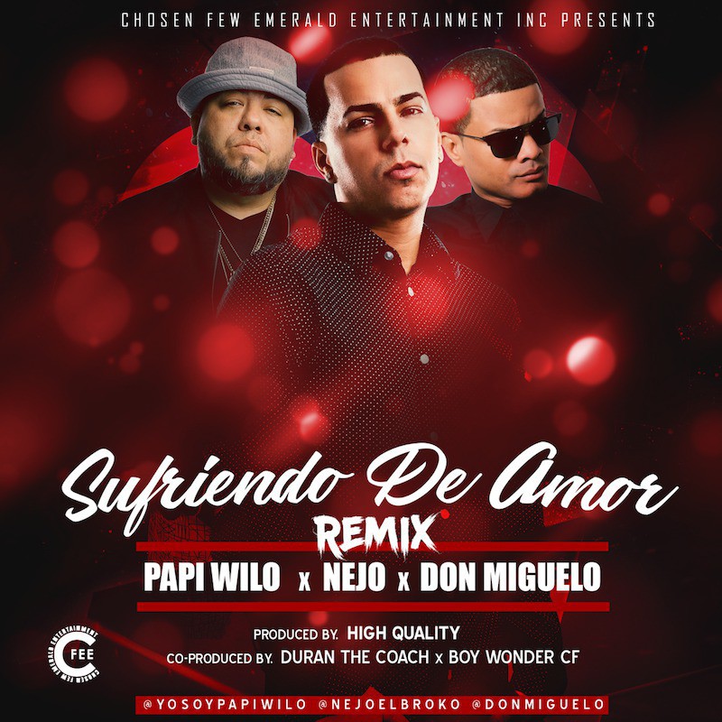 Papi Wilo regresa con el Remix de su éxito "Sufriendo de Amor", e invita a sus amigos Don Míguelo y Nejo, para ser parte de esta canción y video musical.