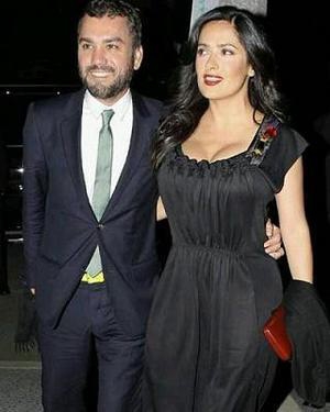 Salma estaba muy sexy con un vestido de Yves Saint Laurent negro y maquillada con los labios rojos.