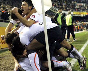 Davis Llerena Valencia - Racing (3-1) Vicente Rodríguez, abrazado por sus compañeros tras marcar frente al Racing de Santander.http://www.ondacero.es 15 de enero de 2009 Share on Facebook