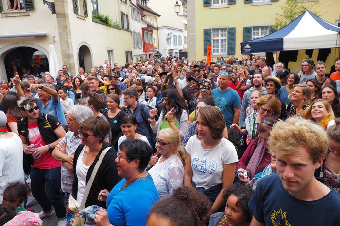 Der Entscheid, die Hauptkonzerte dieses Jahr in der Reithalle durchzuführen, war richtig und hat sich gelohnt. Die Halle bietet den KonzertbesucherInnen eine viel bessere Sicht und ein wunderbares Ambiente. Und auch der Vorplatz ist ein riesiger Gewinn für das Festival. Insbesondere am Sonntag und Montag, den „marktfreien Tagen“ nutzten Hunderte von BesucherInnen das Angebot an Musik, Essen und Trinken.